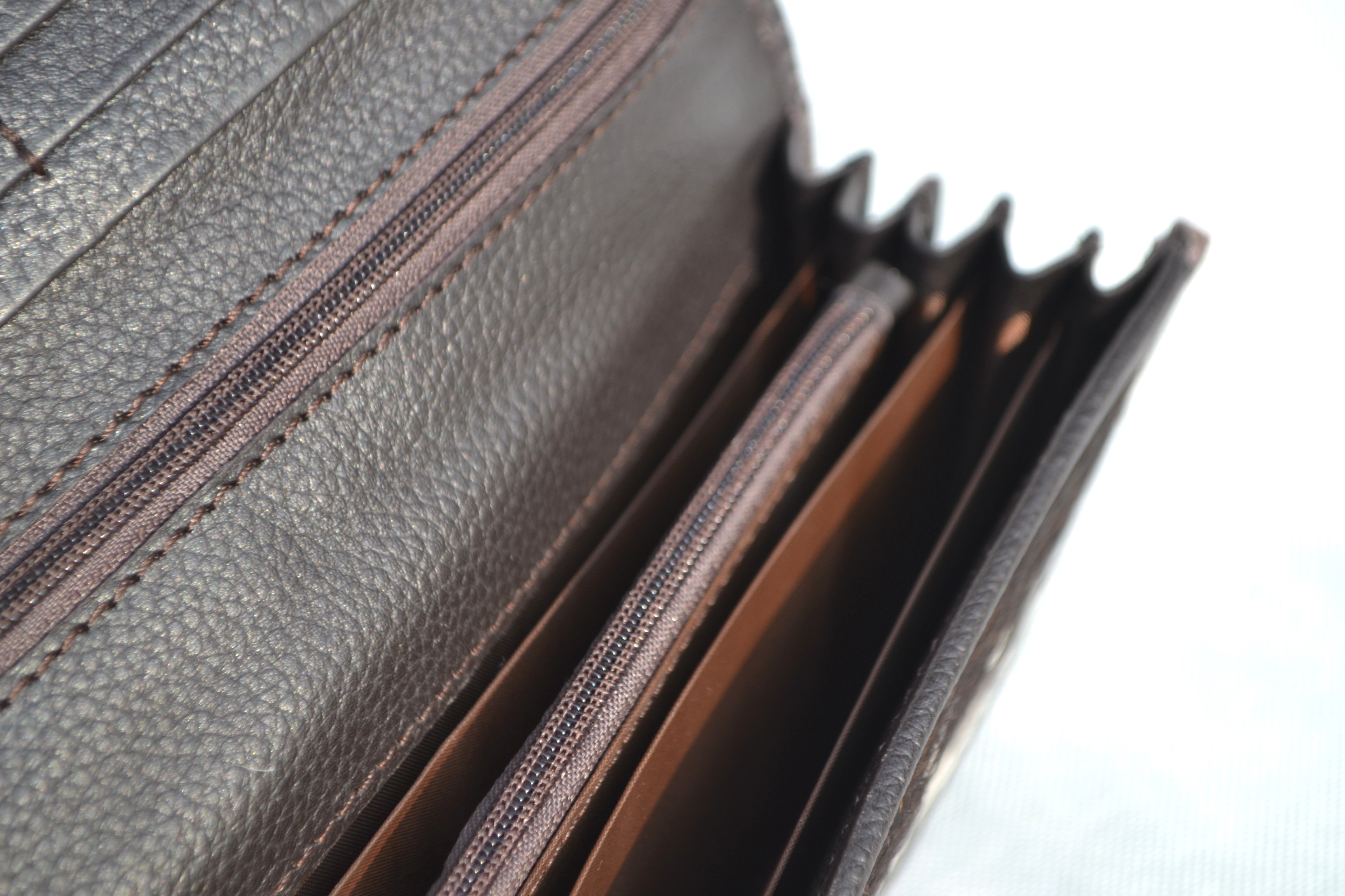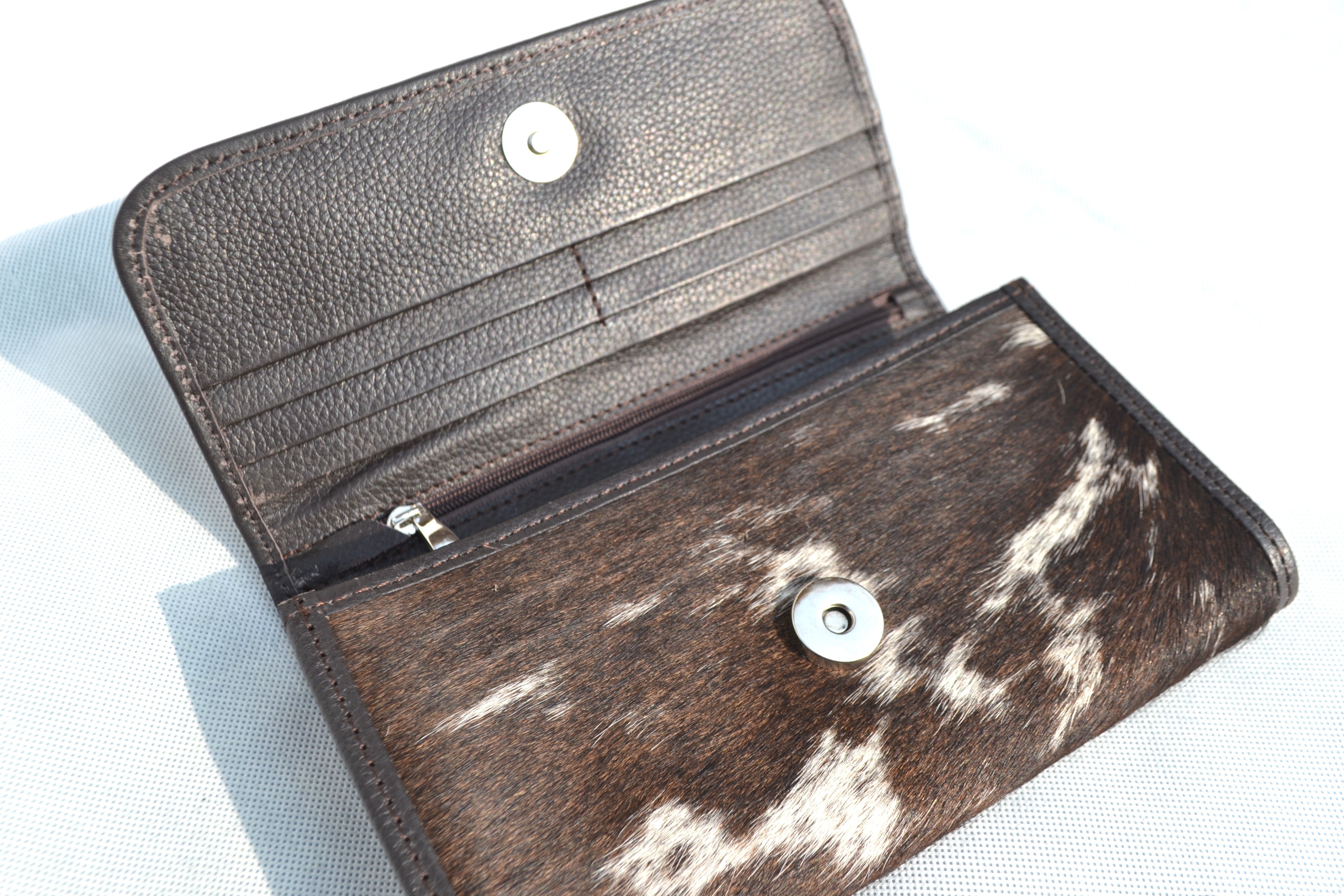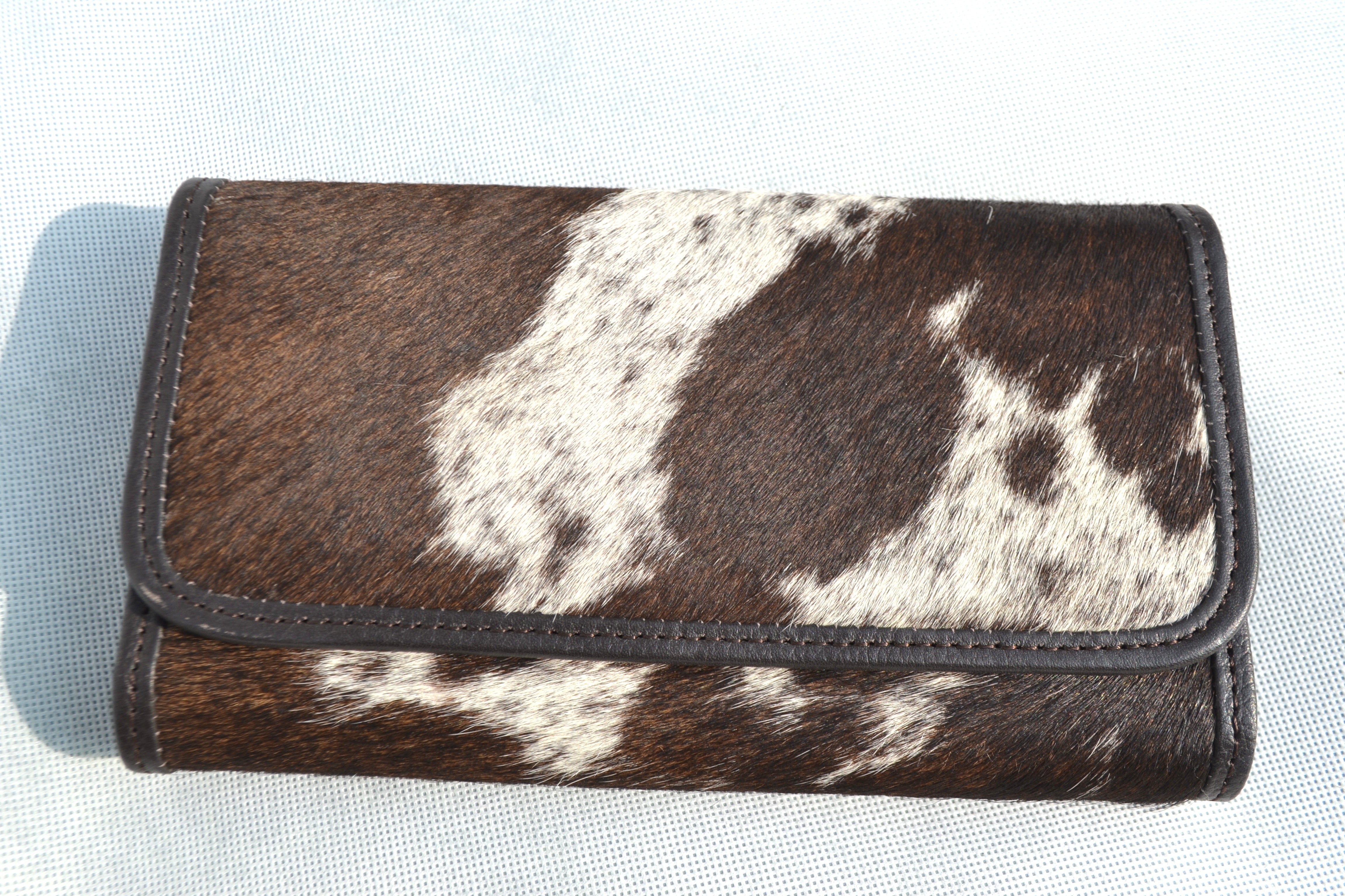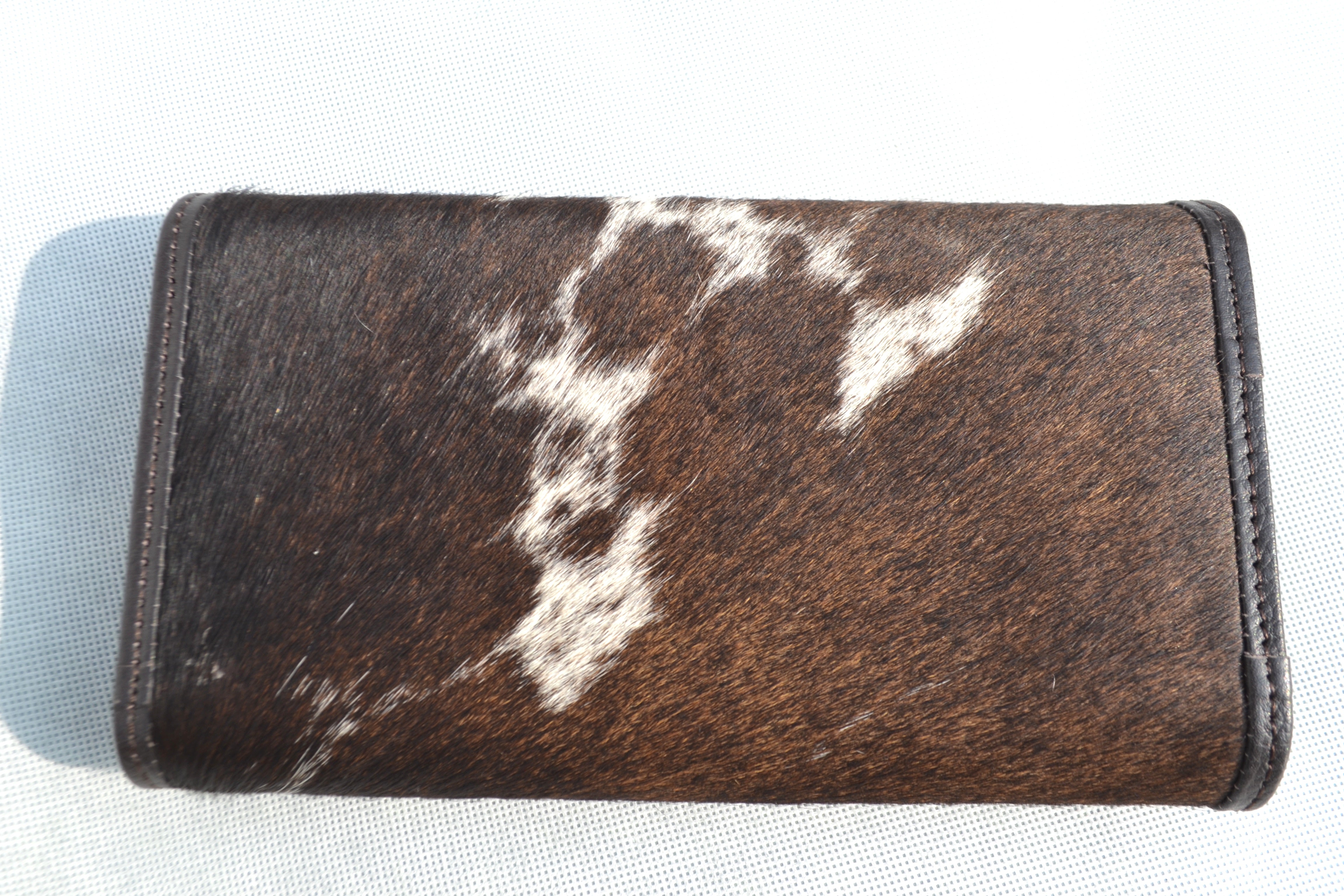 CLUTCH WALLET - DARK BROWN AND WHITE - REAL GENUINE COWHIDE