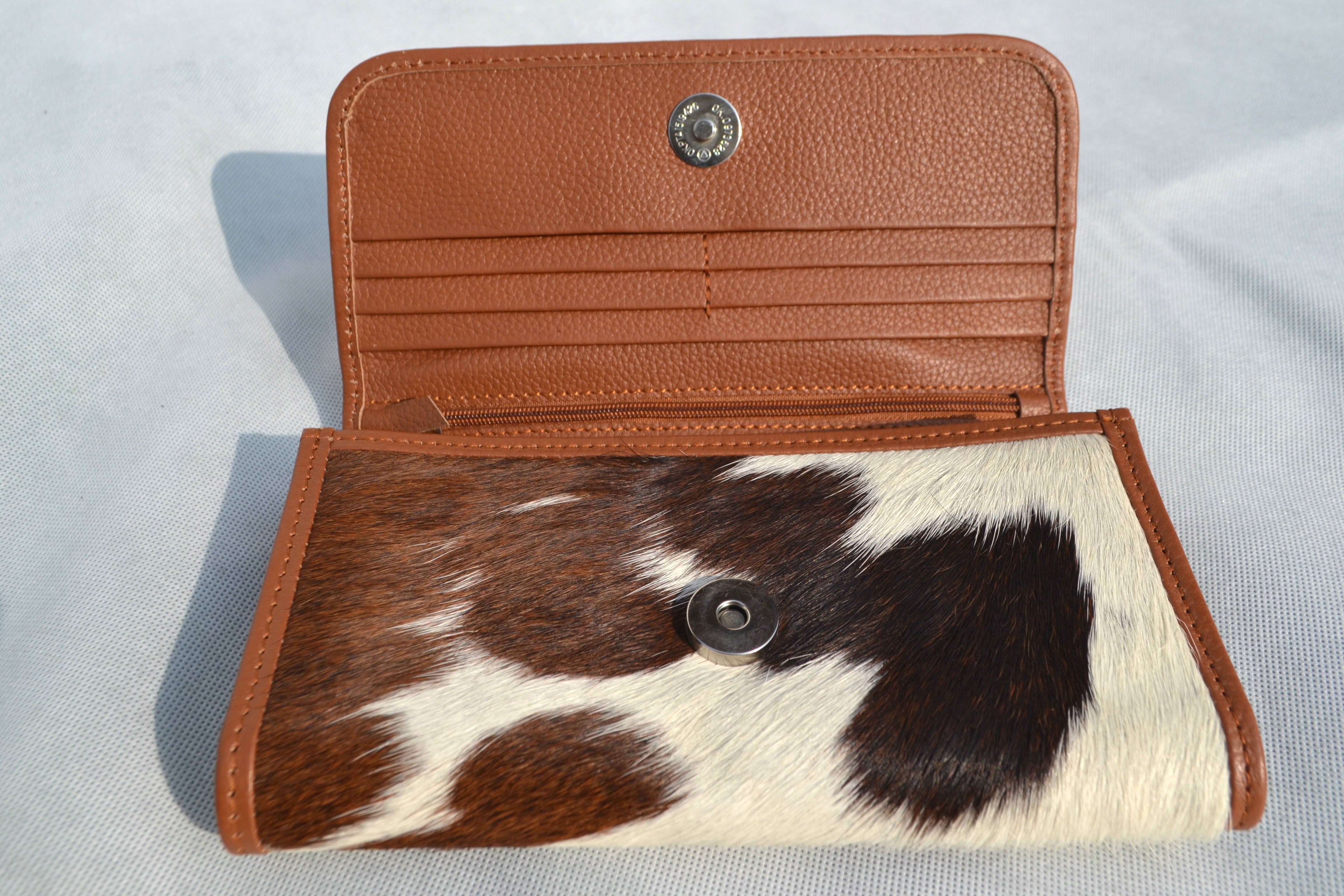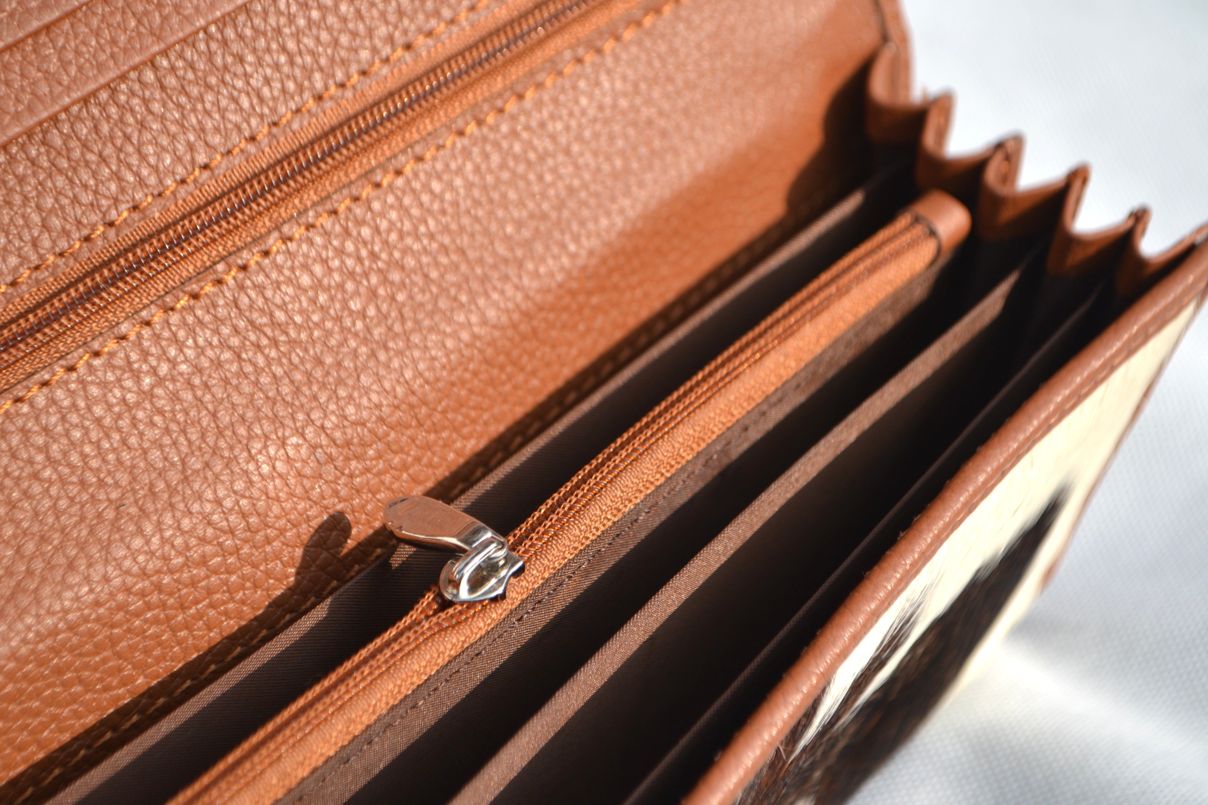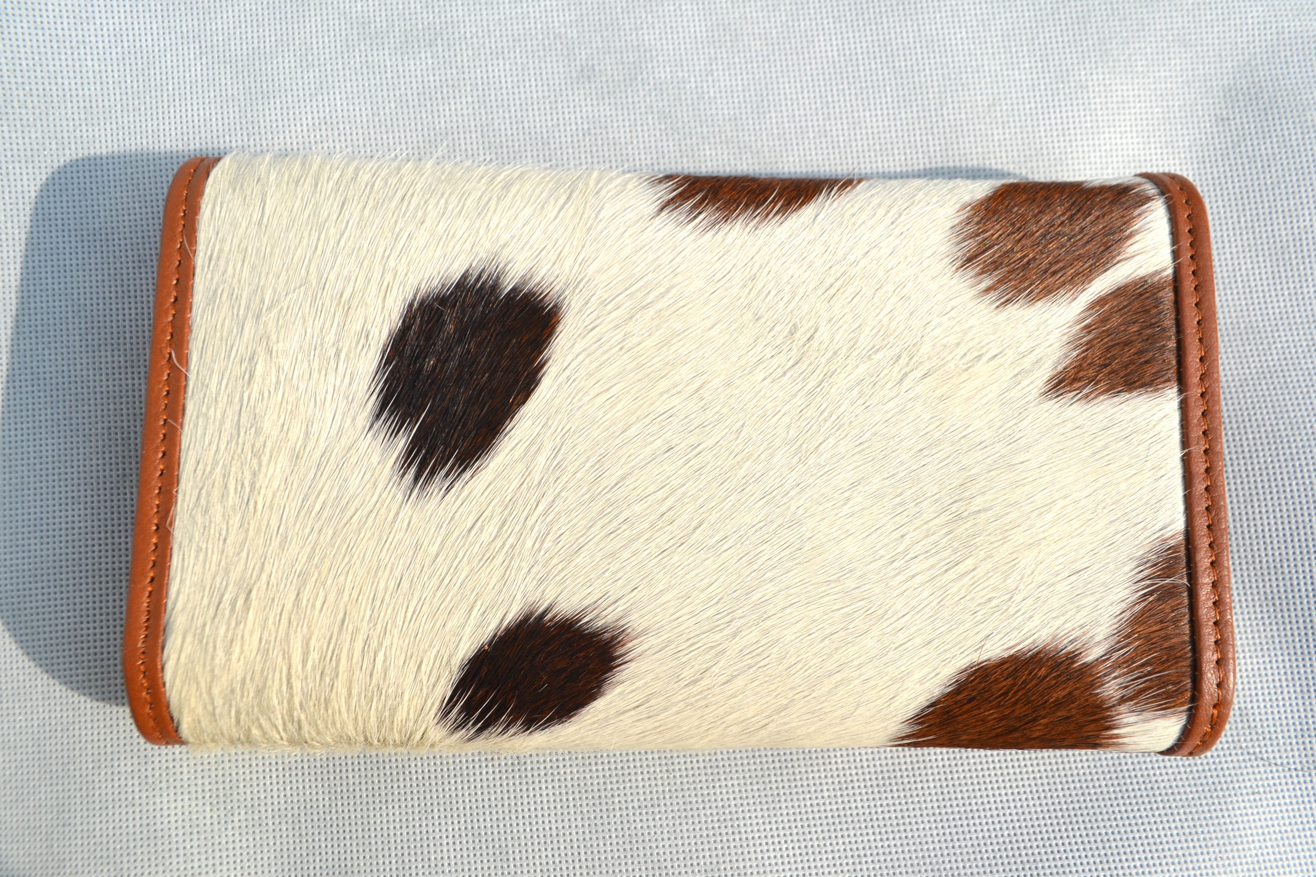 CLUTCH WALLET - SPOTTED BROWN AND WHITE - REAL GENUINE COWHIDE