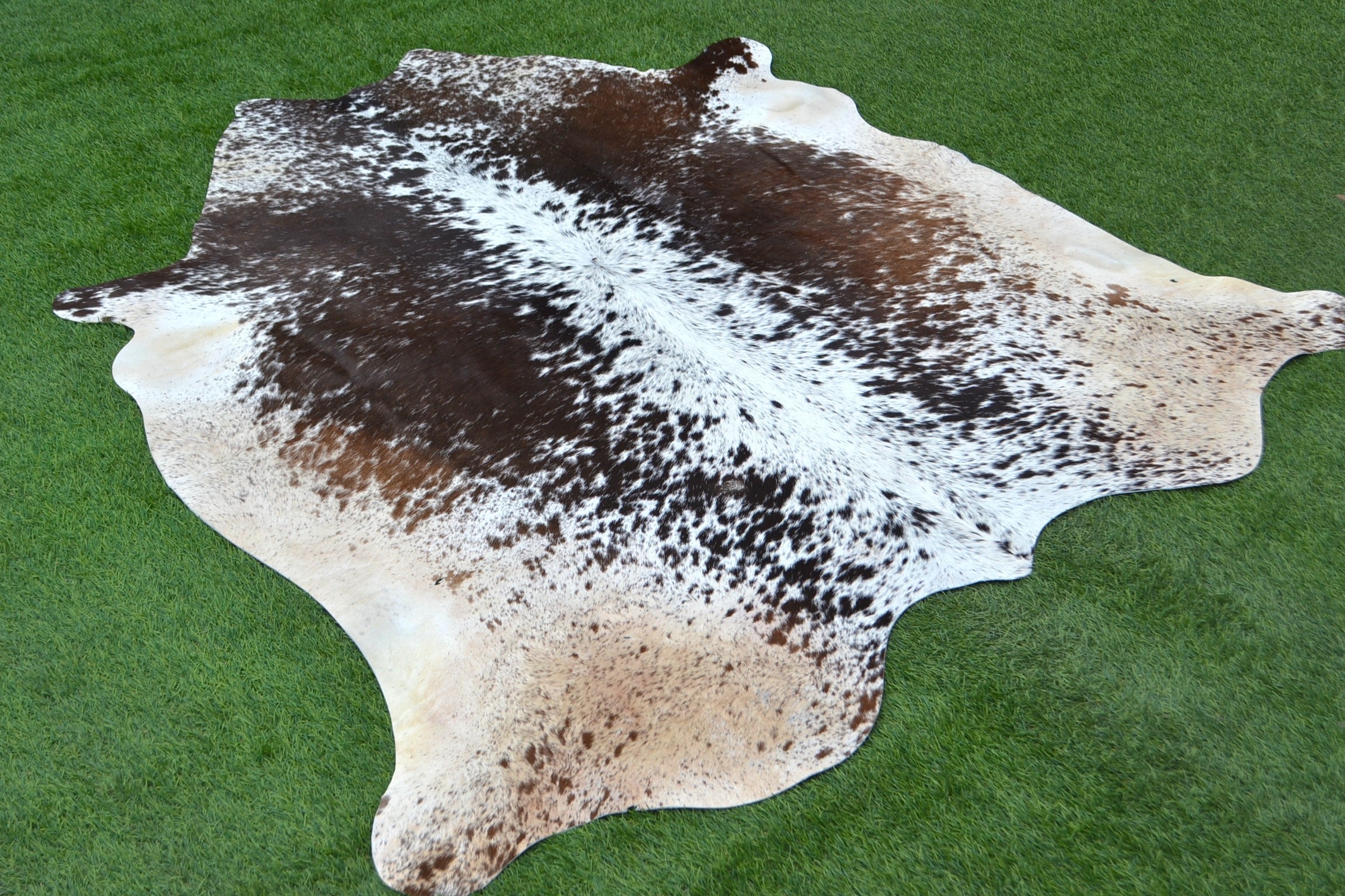 LARGE - REAL GENUINE COWHIDE RUG in a BROWN and WHITE COLOUR