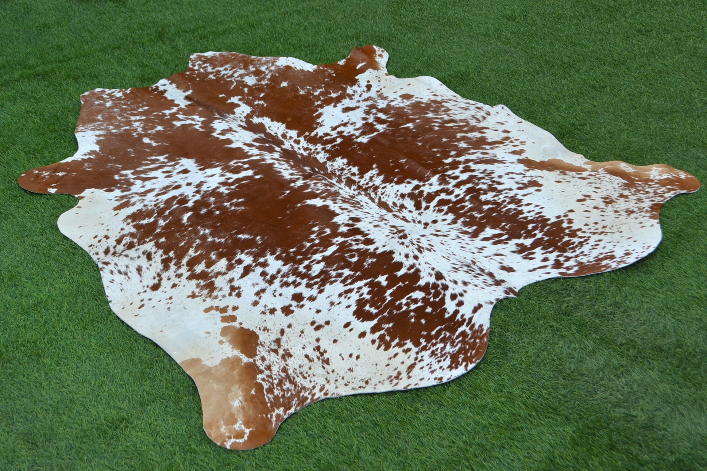 MEDIUM - 59.5"X58" - REAL GENUINE COWHIDE RUG in a BROWN and WHITE COLOUR